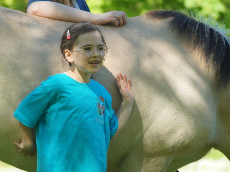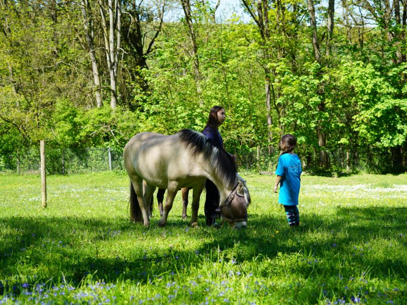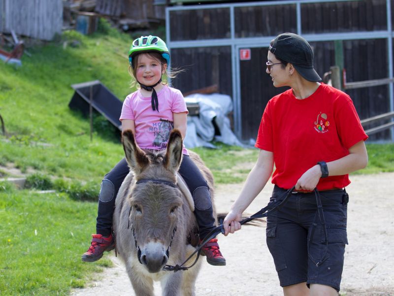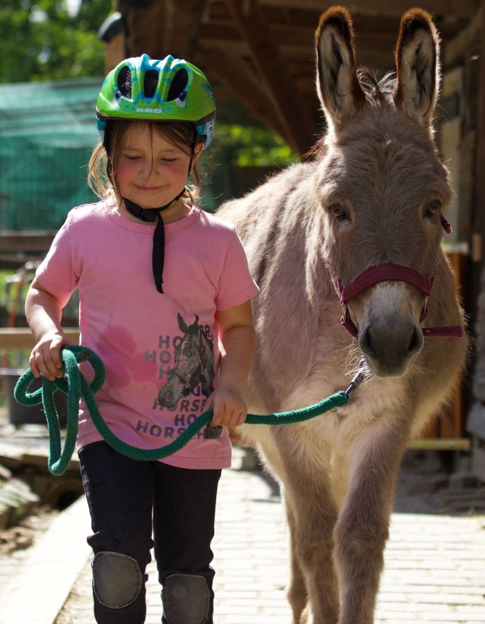 Im Tierbereich gibt es Spaziergänge mit unseren Tieren im Wald oder zwischen den Feldern, Bodenarbeit auf dem Jugendfarmgelände oder es wird geritten.