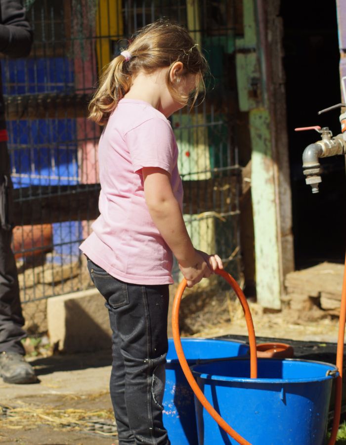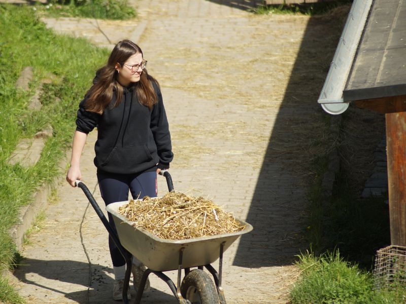 Bevor es losgeht, möchten die Tiere noch von euch versorgt werden. Bei jedem Wetter werden die Ställe gemistet, eingestreut, das Futter vorbereitet und verteilt, die Tiere geputzt – dann wählt ihr gemeinsam eine Aktivität mit den Tieren, in Absprache mit uns und angepasst an die aktuellen Bedürfnisse der Tiere. Bitte achtet darauf auch auf passende Kleidung – bedeutet Festes Schuhwerk ist Pflicht!
