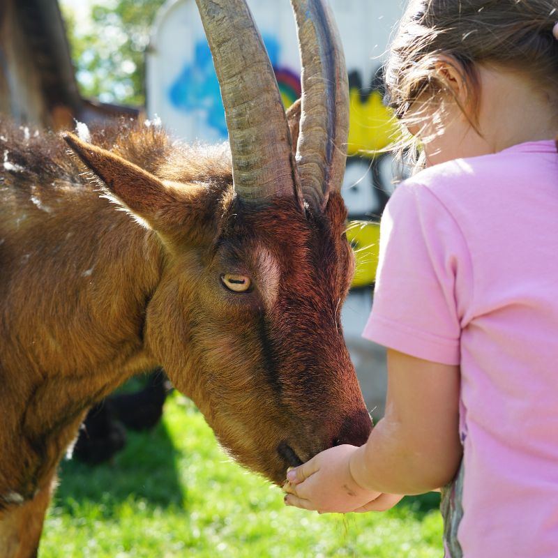 Lernt unsere aufgeweckten Ziegen Zippo, Henry, Frieda, Mathilda, Clara und Gretel kennen. Ob kleine Runden durch Wald und Feld oder lustige Kunststücke – sie sind für jeden Spaß zu haben. Aber passt auf, sie spüren auch das Essen in euren geschlossenen Rucksäcken auf, also räumt die besser weg.